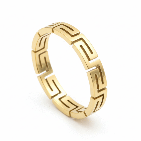 925 Silver Greek Key Design Gold Plated Band Ring | Unisex Geometric Pattern Ring”