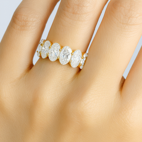 925 Silver 18KT Yellow Gold Plated Oval Cut Diamond Eternity Band Ring | Korean Design Luxury Jewelry for Women | Customizable Wedding Ring