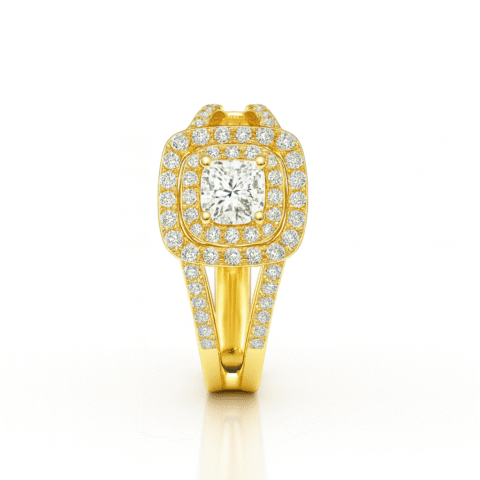 925 Silver 18KT Yellow Gold Plated Round Cut Double Halo Diamond Ring | Korean Design Engagement Ring for Women | Customizable Luxury Jewelry