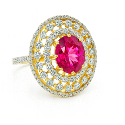 925 Silver 18KT Yellow Gold Plated Pink Ruby Diamond Ring | Korean Design Luxury Jewelry for Women | Customizable Statement Ring