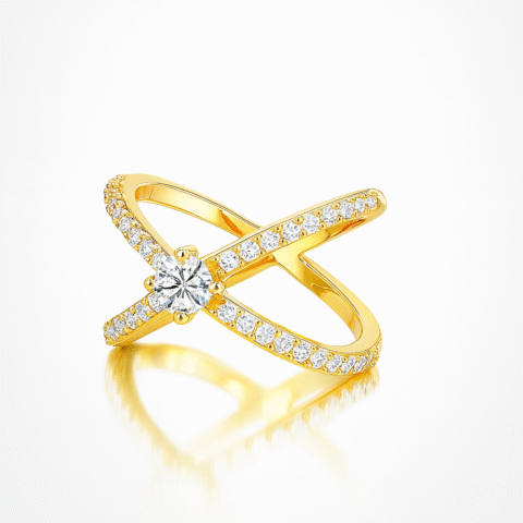 925 Silver 18KT Yellow Gold Plated Cross Diamond Ring | Korean Design | Customizable Women’s Luxury Jewelry