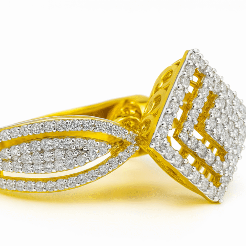925 Silver 18KT Gold Plated Square Cluster Diamond Ring | Korean Design Women’s Luxury Jewelry | Customizable Gold & Silver Ring