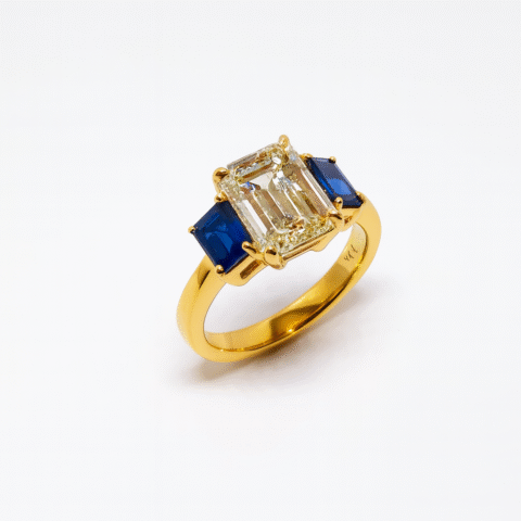 925 Silver 18KT Yellow Gold Plated Blue Sapphire Diamond Ring | Korean Design Luxury Jewelry for Women | Customizable Engagement & Party Wear Ring