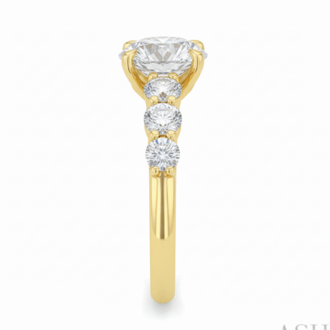 925 Silver Three Stone Diamond Engagement Ring in 18K Yellow Gold | Round Cut Bridal Ring”