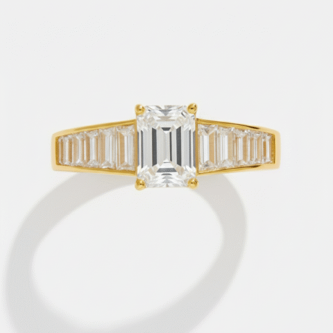 925 Silver 18KT Yellow Gold Plated Emerald Cut Solitaire Diamond Ring | Korean Design Engagement Ring for Women | Customizable Luxury Jewelry