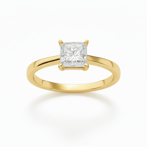 925 Silver Princess Cut Solitaire Ring – Square Diamond Look Engagement Ring”