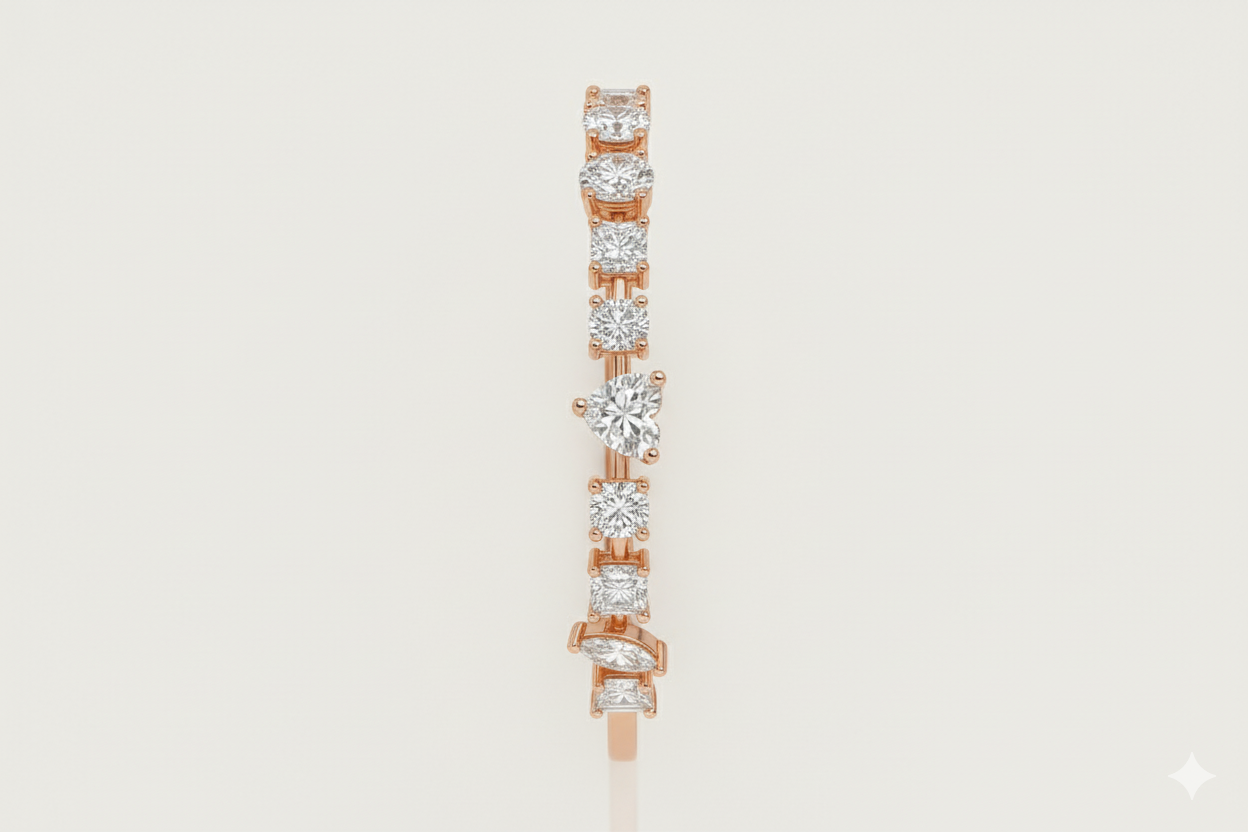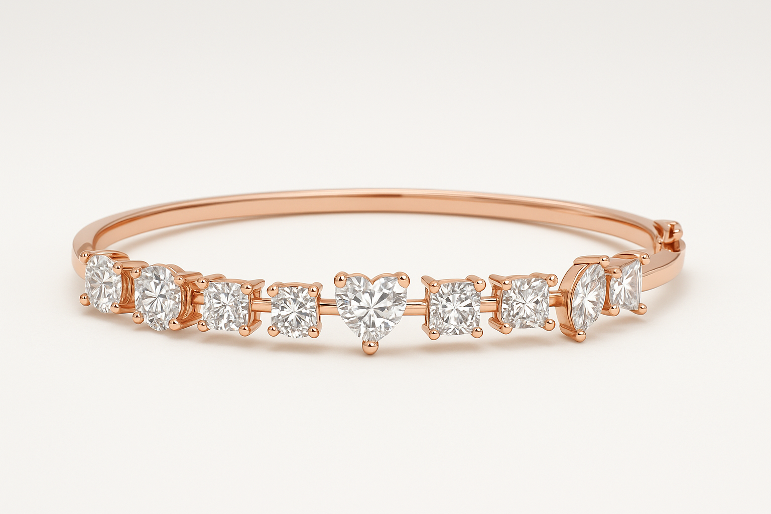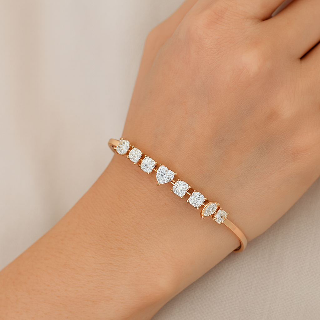 925 Silver 18KT Rose Gold Plated Diamond Bracelet | Korean Design Luxury Jewelry for Women | Customizable Heart Diamond Bangle
