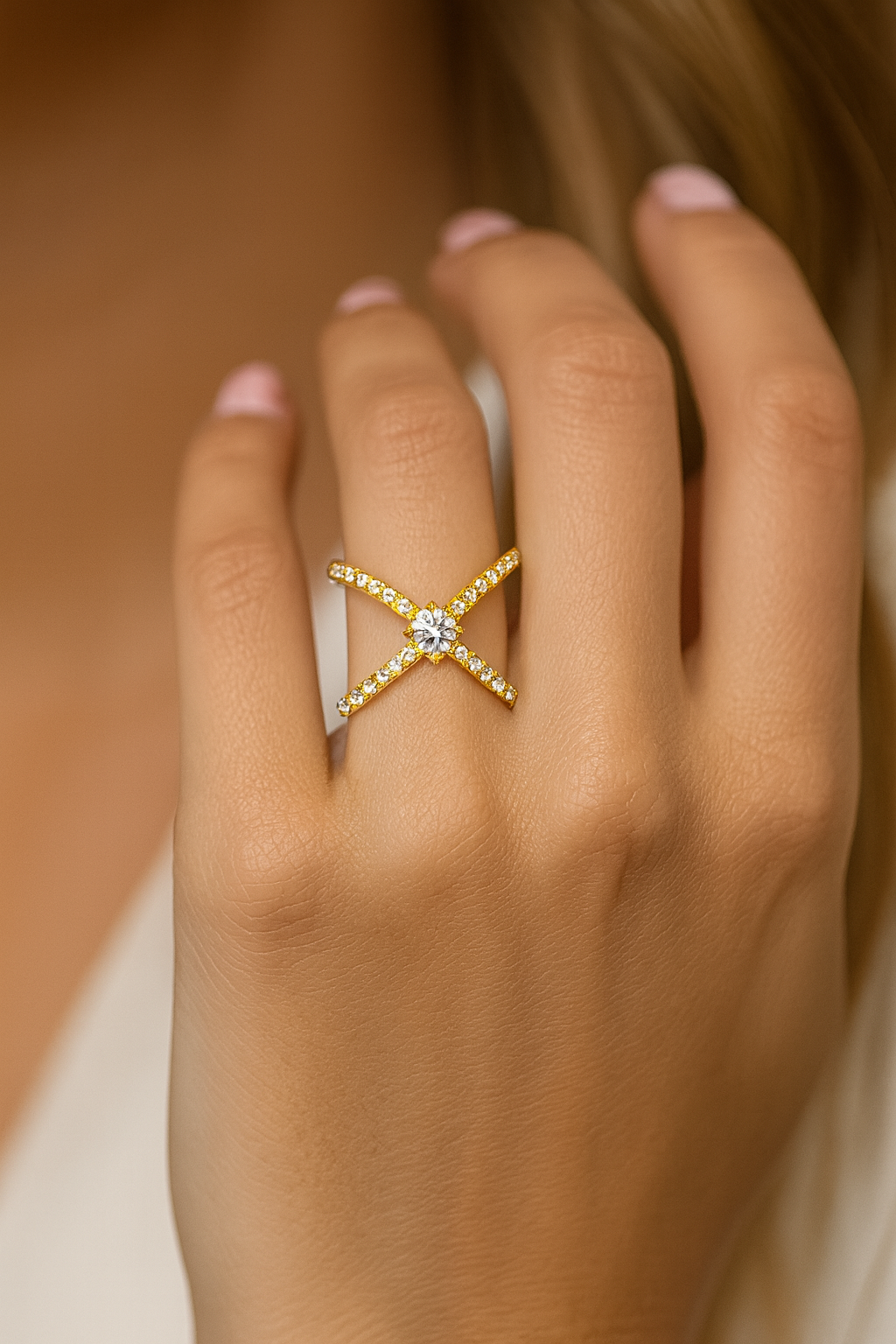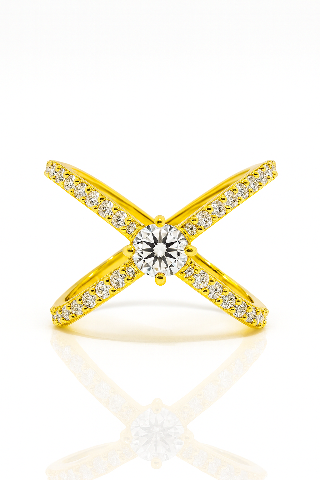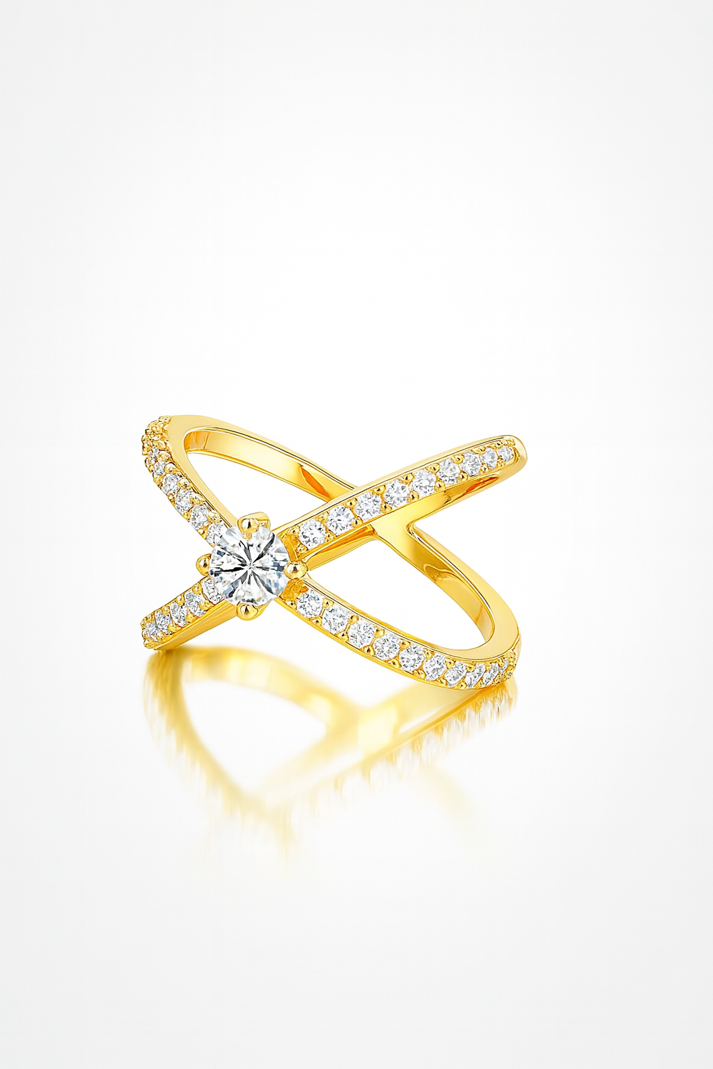 925 Silver 18KT Yellow Gold Plated Cross Diamond Ring | Korean Design | Customizable Women’s Luxury Jewelry