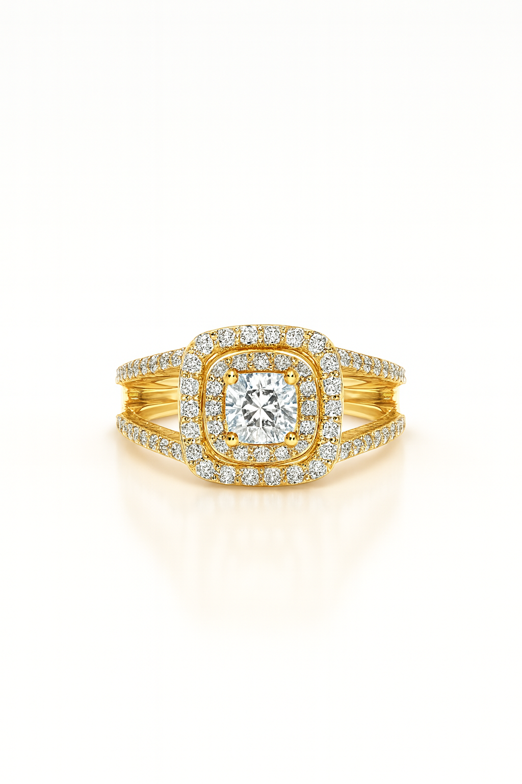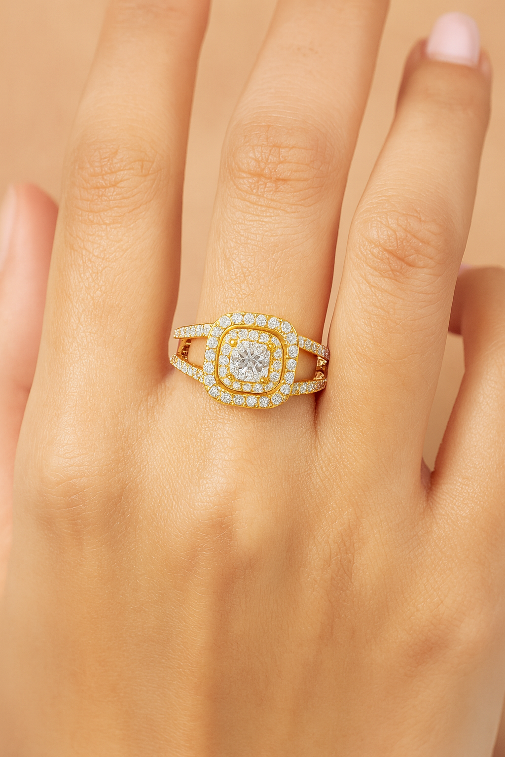 Be the first to review “925 Silver 18KT Yellow Gold Plated Round Cut Double Halo Diamond Ring | Korean Design Engagement Ring for Women | Customizable Luxury Jewelry” Cancel reply