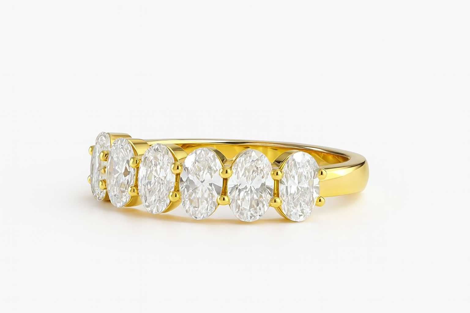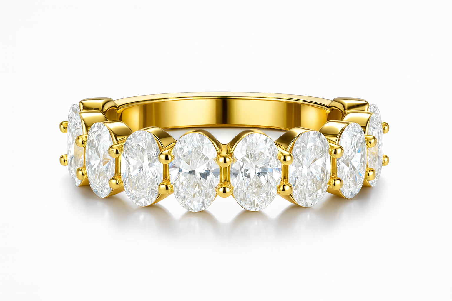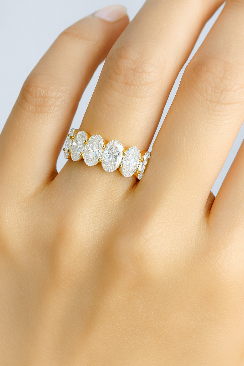 925 Silver 18KT Yellow Gold Plated Oval Cut Diamond Eternity Band Ring | Korean Design Luxury Jewelry for Women | Customizable Wedding Ring