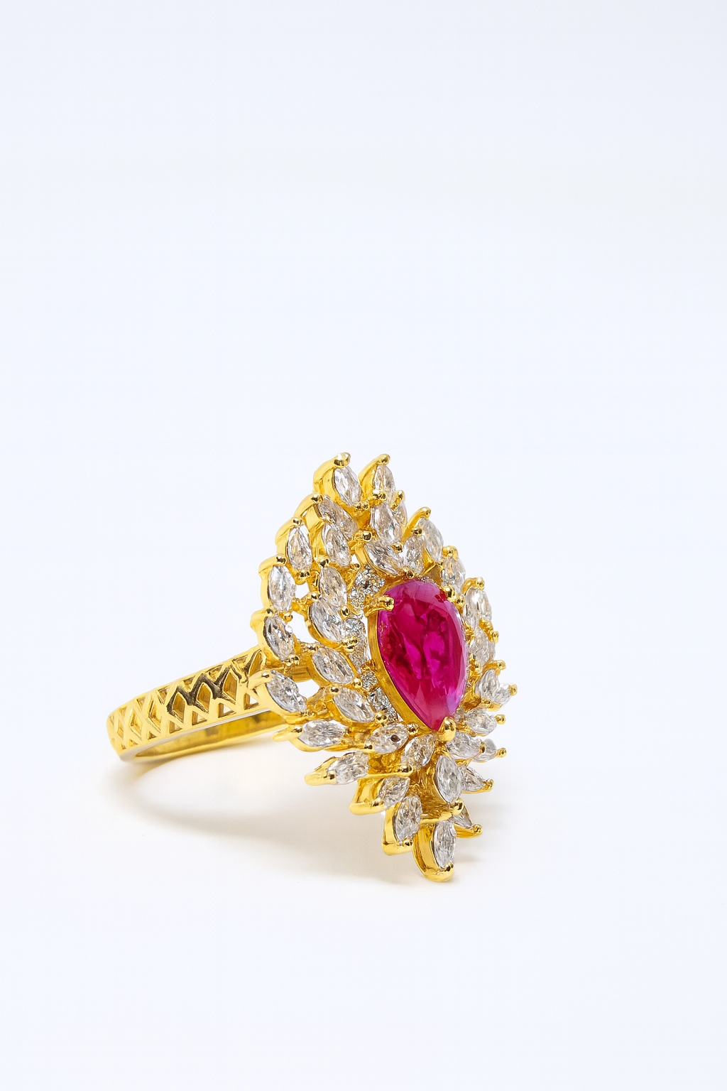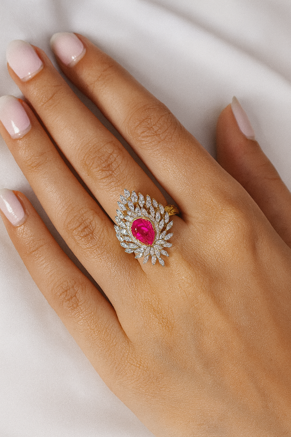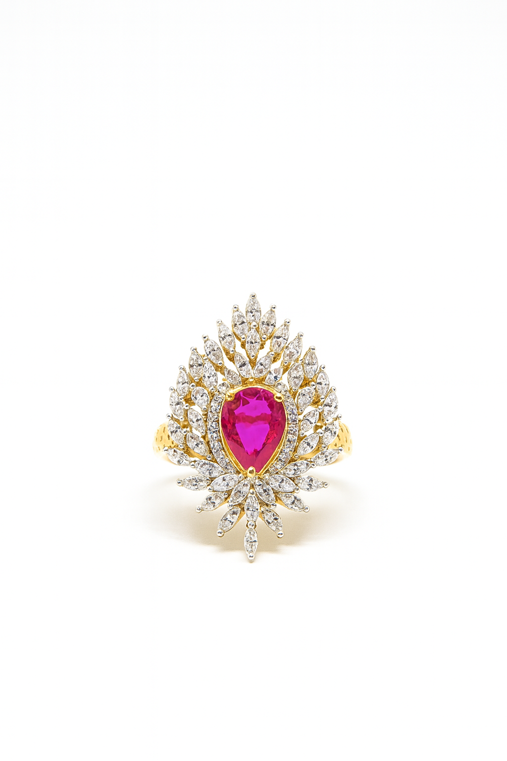 925 Silver 18KT Yellow Gold Plated Pink Ruby Diamond Ring | Korean Design Luxury Jewelry for Women | Customizable Statement Ring