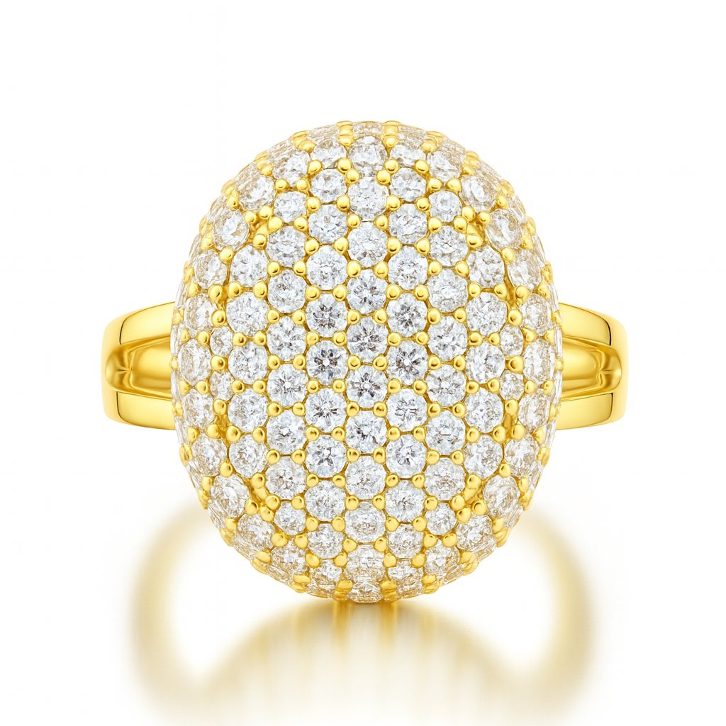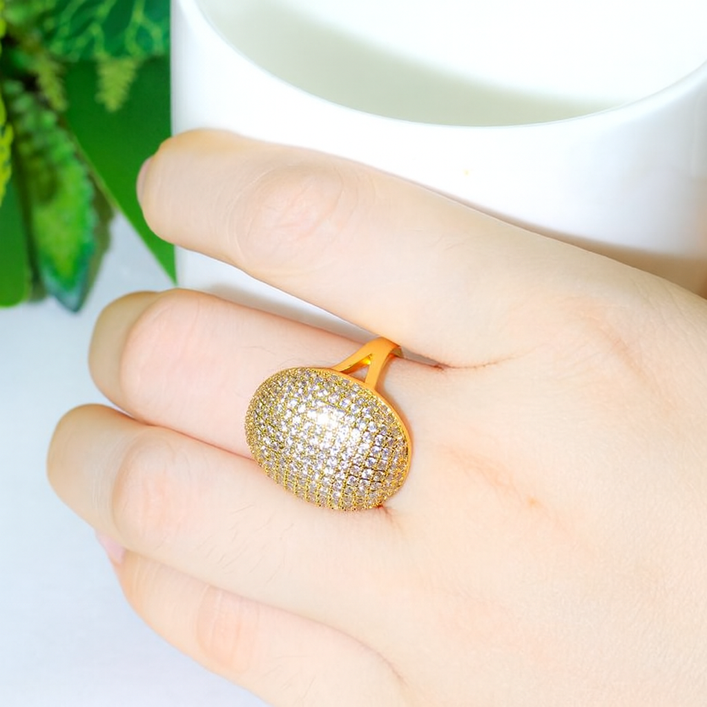 925 Silver Dome Cocktail Ring | Gold Plated Full Pavé Korean Statement Ring for Women”