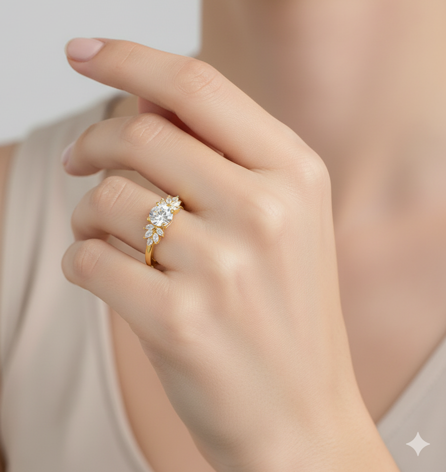 925 Silver Multi Stone Diamond Ring | Gold Plated Engagement Ring for Women”