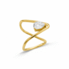 925 Silver Vermeil Crossover Pear Diamond Ring for Women – Elegant Gold Plated Open Design